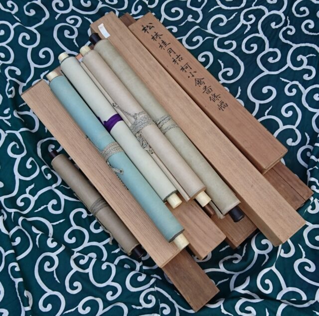 解体予定のご実家から引き上げてきたと言う掛軸や絵画、九谷焼の獅子置物、銀製の記念品などを買取させていただきました。